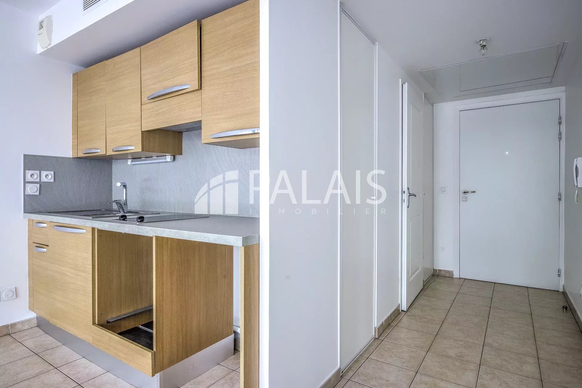 Entrée avec placard, séjour lumineux avec cuisine américaine et bow window , chambre, salle de bains avec wc.